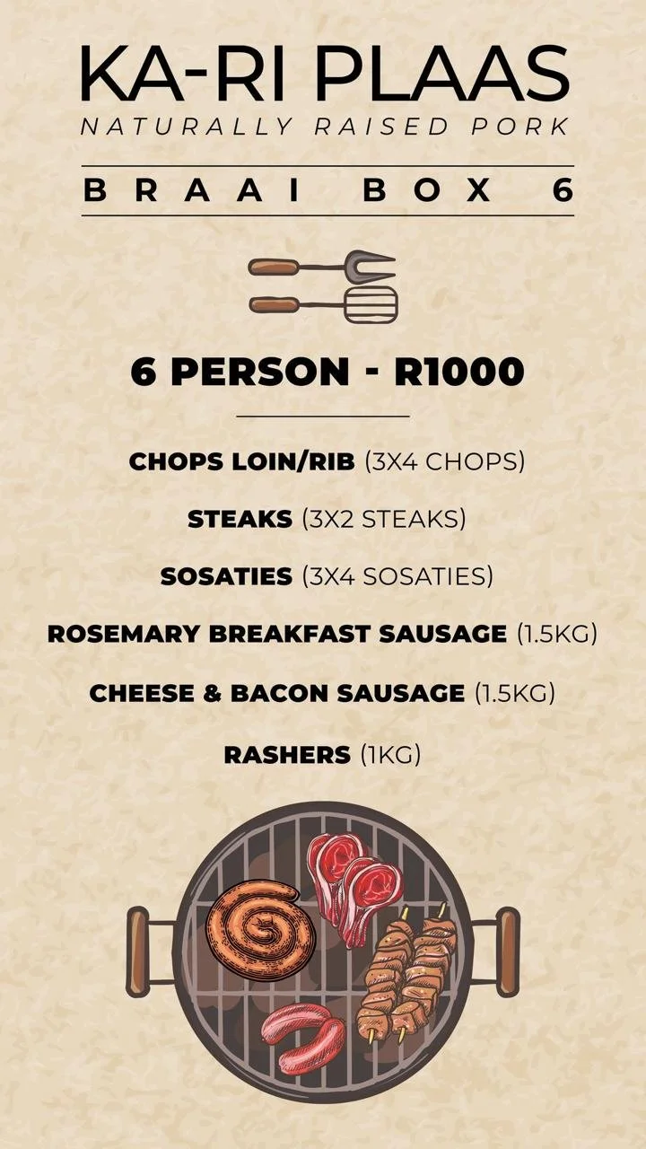 Our Products Pork Chops Pork Belly Roast Pork Schnitzel Rashers Pork Smash Burgers Pork Sosaties Specials * Specials * Specials *